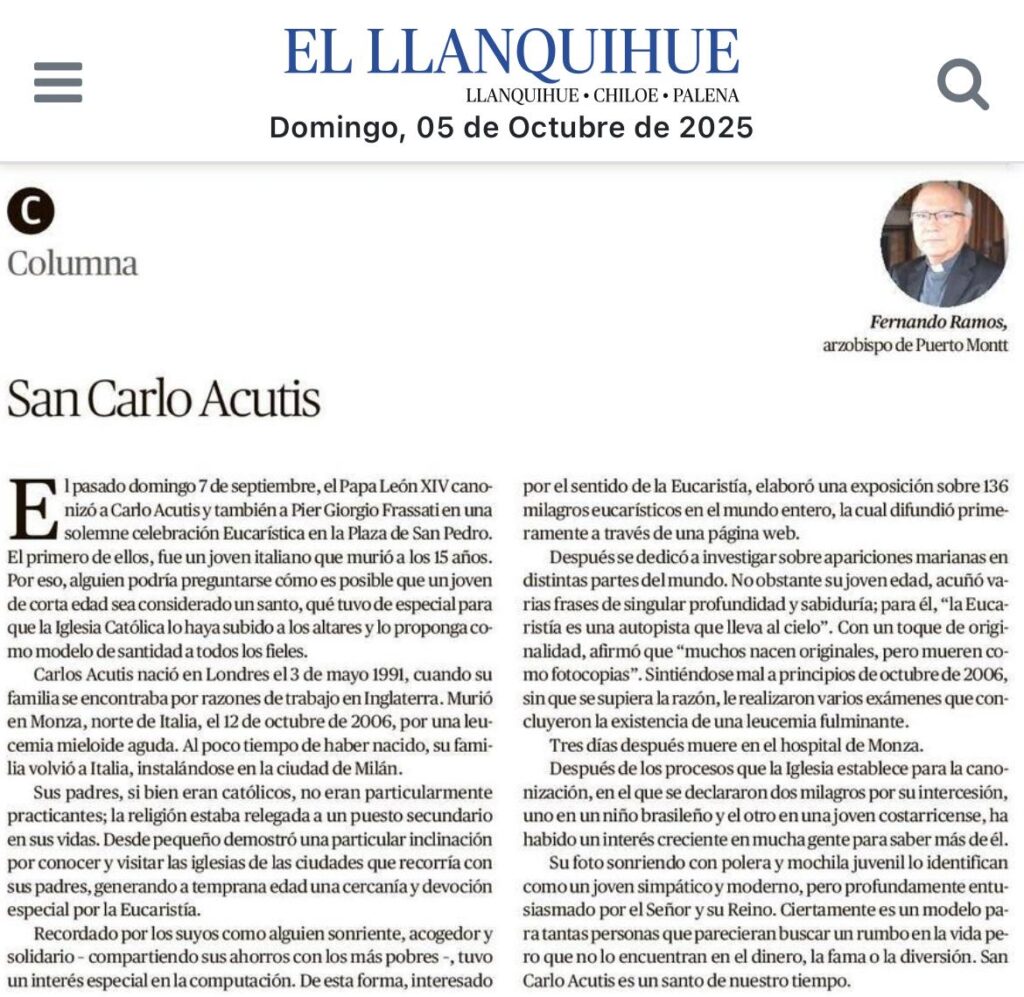 Después de los procesos que la Iglesia establece para la canonización, en el que se declararon dos milagros por su intercesión, uno en un niño brasileño y el otro en una joven costarricense, ha habido un interés creciente en mucha gente para saber más de él. Su foto sonriendo con polera y mochila juvenil lo identifican como un joven simpático y moderno, pero profundamente entusiasmado por el Señor y su Reino. Ciertamente es un modelo para tantas personas que parecieran buscar un rumbo en la vida pero que no lo encuentran en el dinero, la fama o la diversión. San Carlo Acutis es un santo de nuestro tiempo.