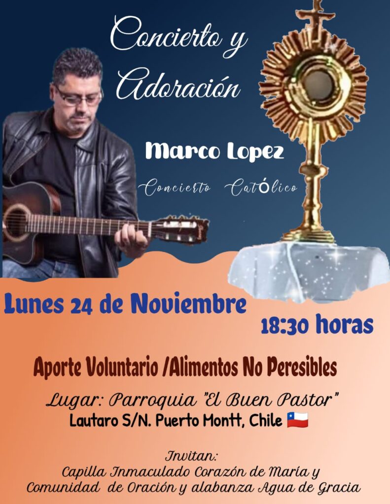 Este 24 de noviembre, la comunidad de la Parroquia El Buen Pastor tendrá la alegría de recibir a Marco López, quien ofrecerá un momento de concierto y Adoración para alabar juntos al Señor.